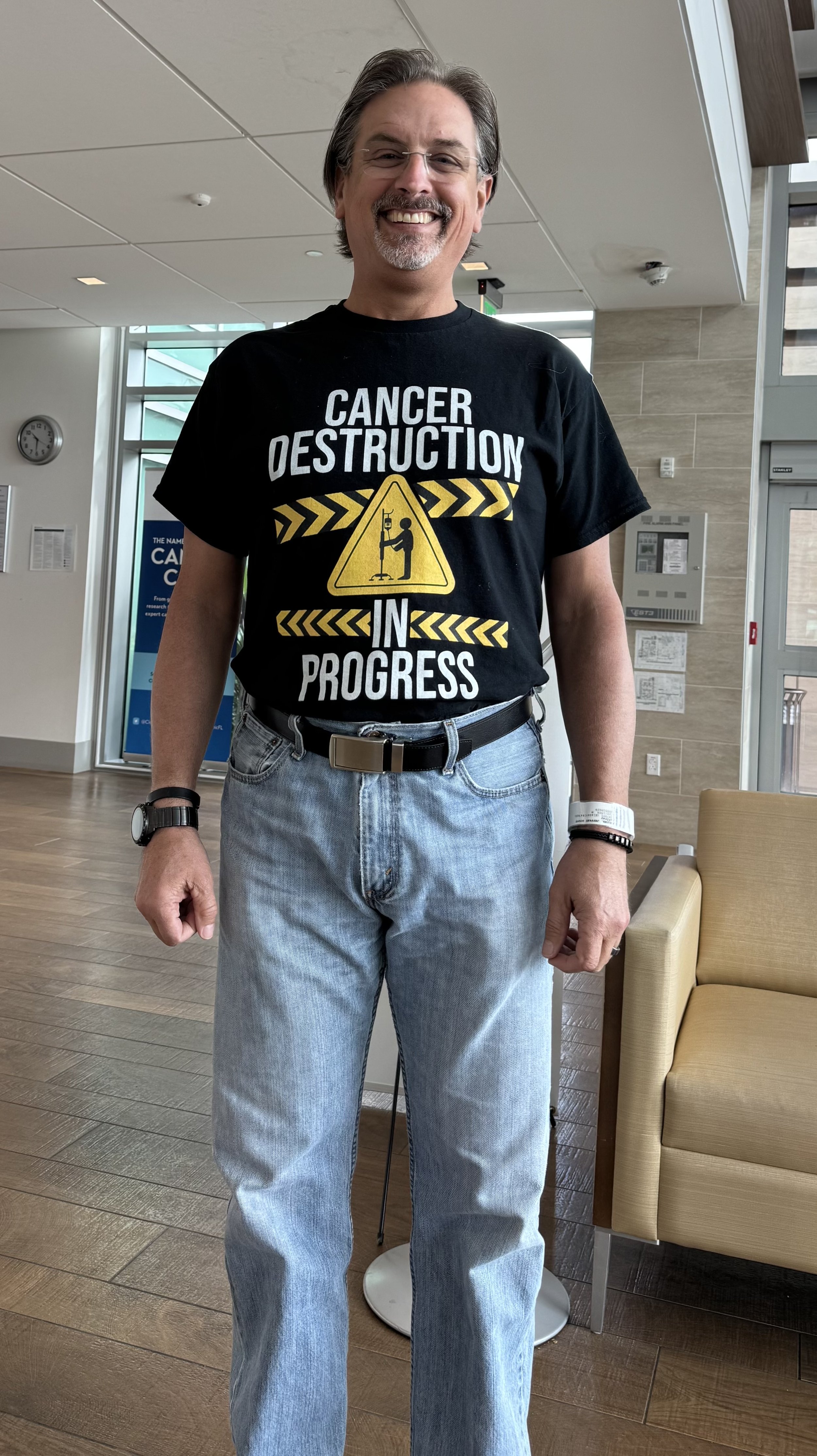 Headed into my every other week treatment, I had to wear my newest shirt. As I walked into the waiting room a guy said, “Hey! I like that shirt!” So, I had him take this picture for me. Then he hauled out his phone and took a picture for himself. Ha! I gotta say, I have not had that happen before.